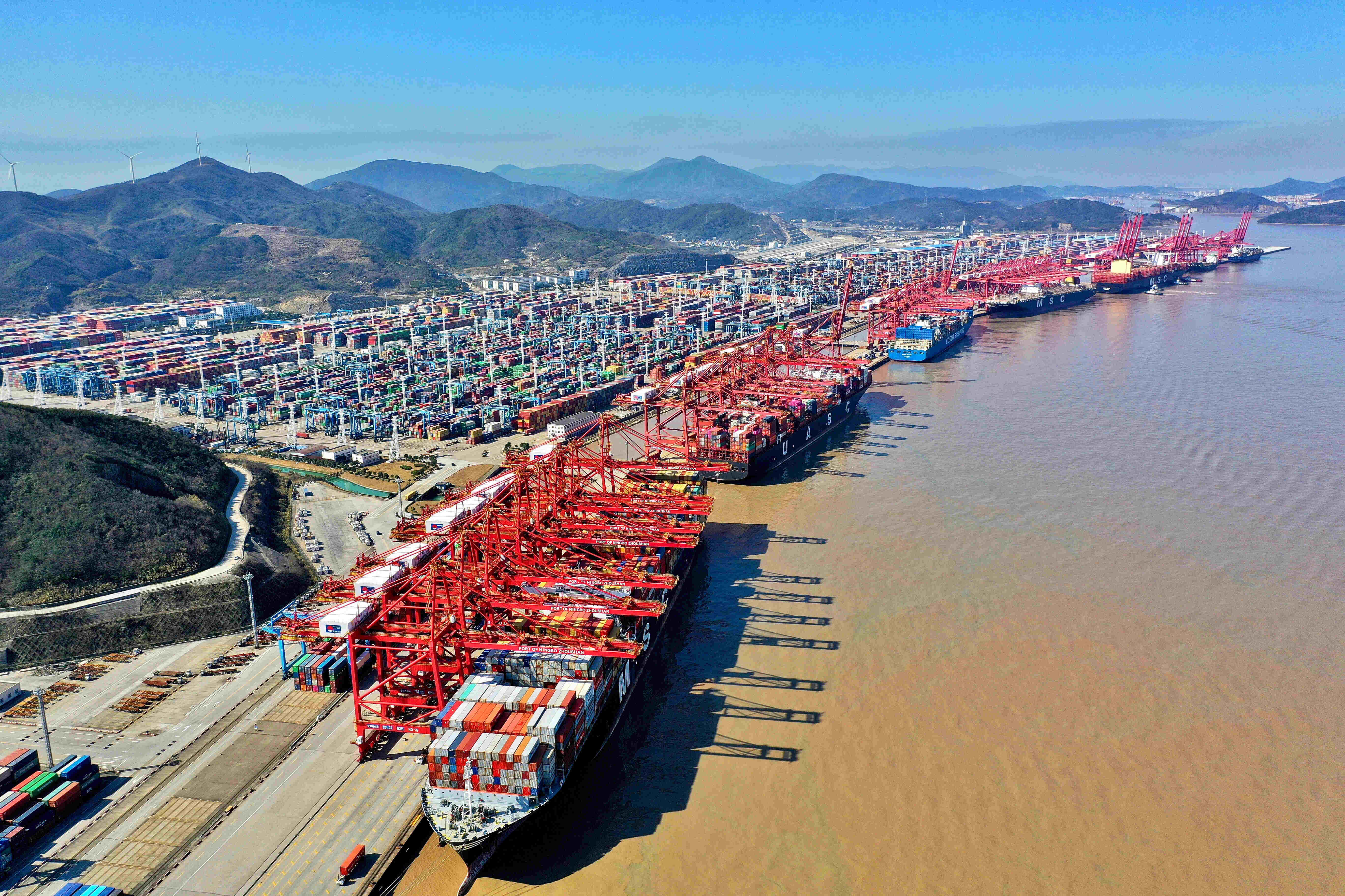 随着一系列短期制约因素的消除,宁波舟山港再现一派繁忙景象。在全球第三个“千万级”单体集装箱码头——穿山港区,吊机林立,集卡穿梭。截至3月6日,共有1593家集卡企业复工,复工率达96%;港区空箱提空量加快,连续11天所提空箱保持在1.3万标箱以上。