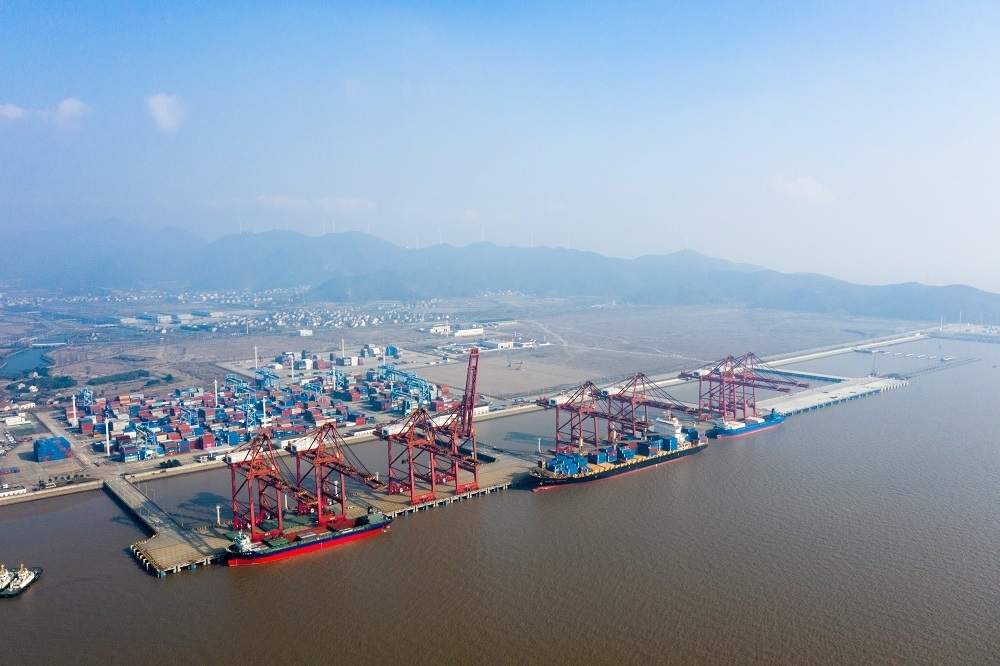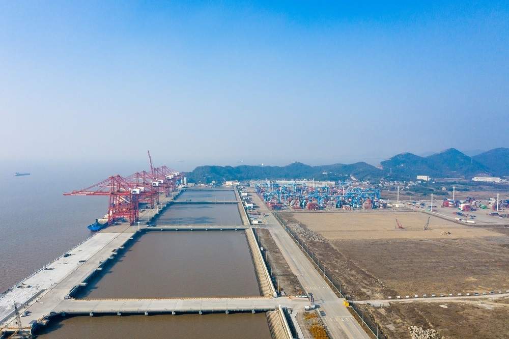 12月24日,随着最后一幅码头面层浇筑完成,宁波舟山港金塘港区大浦口集装箱码头工程二阶段3号泊位主体结构完工。