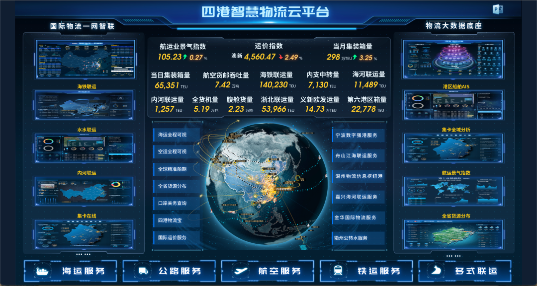 2022年,依托全球第一综合枢纽港——宁波舟山港,宁波舟山国际航运中心海港枢纽及疏运体系建设表现亮眼。宁波舟山港完成年货物吞吐量12.61亿吨,连续14年位居全球第一,完成年装箱吞吐量3335万标准箱,继续保持全国第二、全球第三位,同比增幅7.3%,是全球前十大装箱港口中吞吐量增速最快的港口之一;年度新建成3个专业化大型装箱泊位,新增作业能力280万标准箱,总作业能力达到4000万标准箱,专业化大型装箱泊位总数达到39个。航线网络和疏运体系不断完善,宁波舟山港装箱航线总数达到300条,其中国际航线248条,铁、河、江联运网络持续织密。