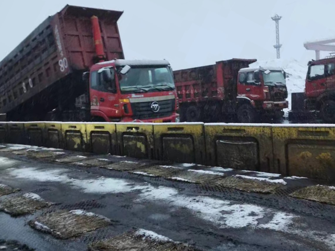 库场班及时对卡口、地磅进行积雪清理,并铺设防滑草垫,确保货物过磅准确的同时,也为货运司机交通安全提供了保障。