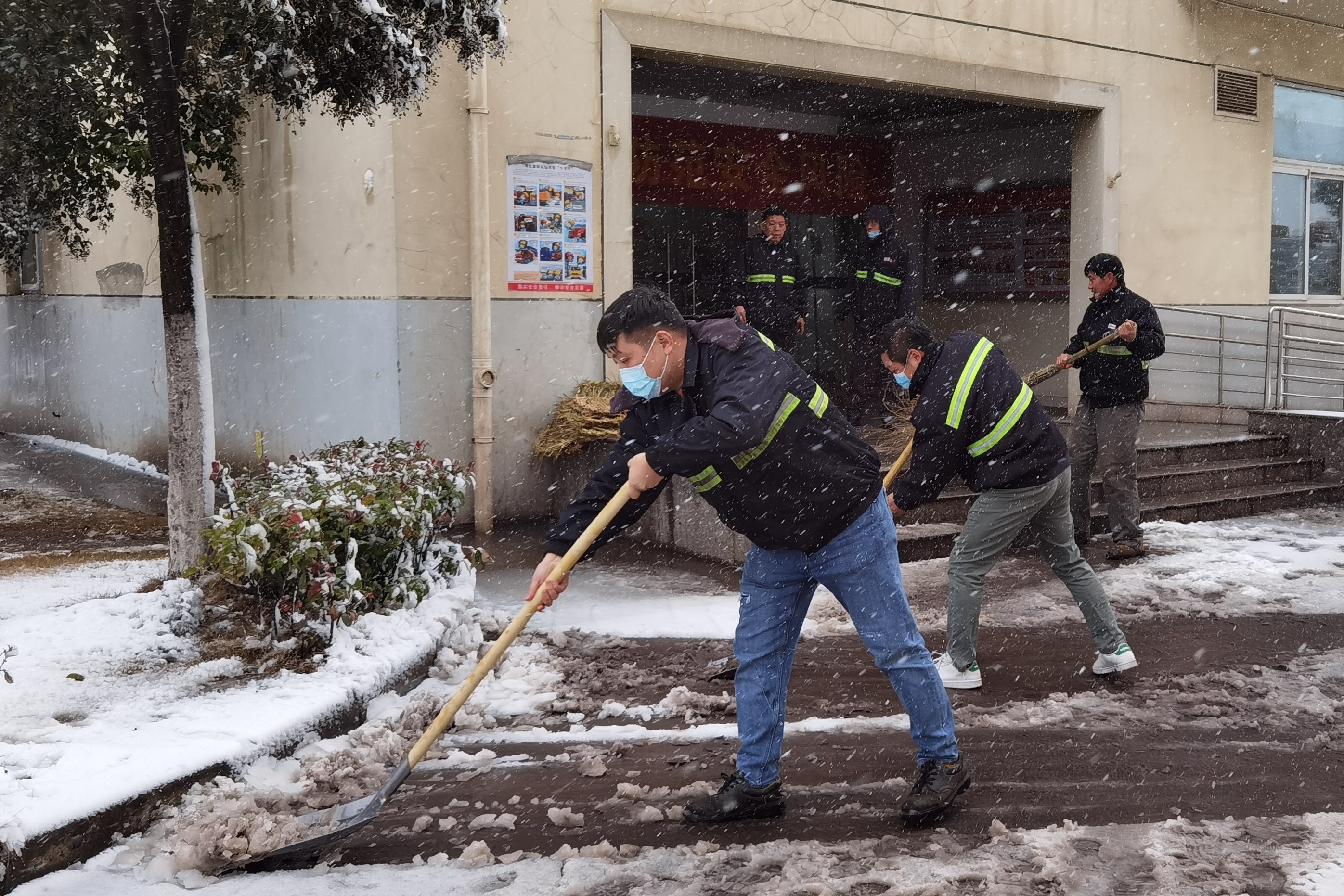 在公司主干道上和食堂门前,广大党员干部职工不畏严寒,配合默契,铲的铲、推的推、扫的扫,虽然雪水浸入鞋里,耳朵也被冻得通红,但也丝毫没有影响大家高涨的热情。经过各部门的共同努力,港区内的积雪情况得到有效缓解,及时保证了道路的安全畅通,为职工安心就餐带来了便捷。