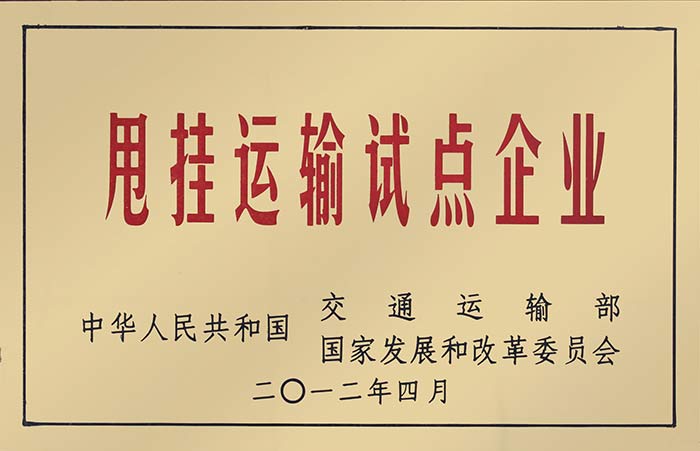 获得交通运输部国家发展和发改委员会-甩挂运输试点企业