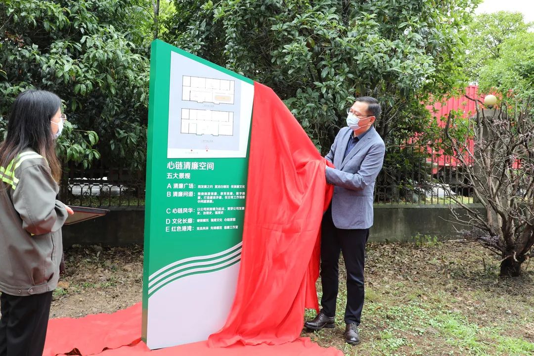 随后,童孟达、吴伟、方奕、名合尚之以及彭敏杰、刘浩、矢部龙树和团员青年代表任敏彦为奠基牌培土。吴伟为心链清廉空间揭牌。