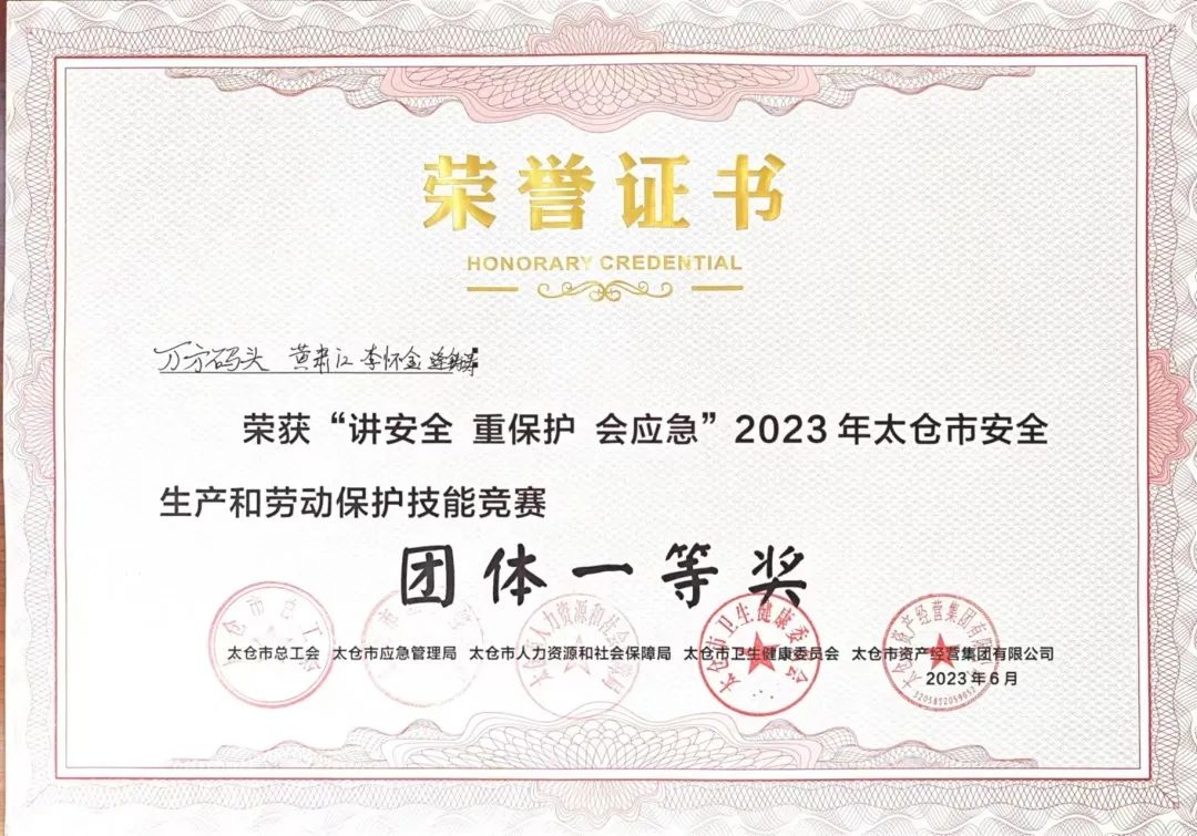6月2日,在太仓市举行的2023年安全生产和劳动保护技能竞赛中,公司代表队(黄肃江、李怀金、逄铸涛)摘得桂冠,荣获团体第一名,公司职工黄肃江获得团队中个人第一名。