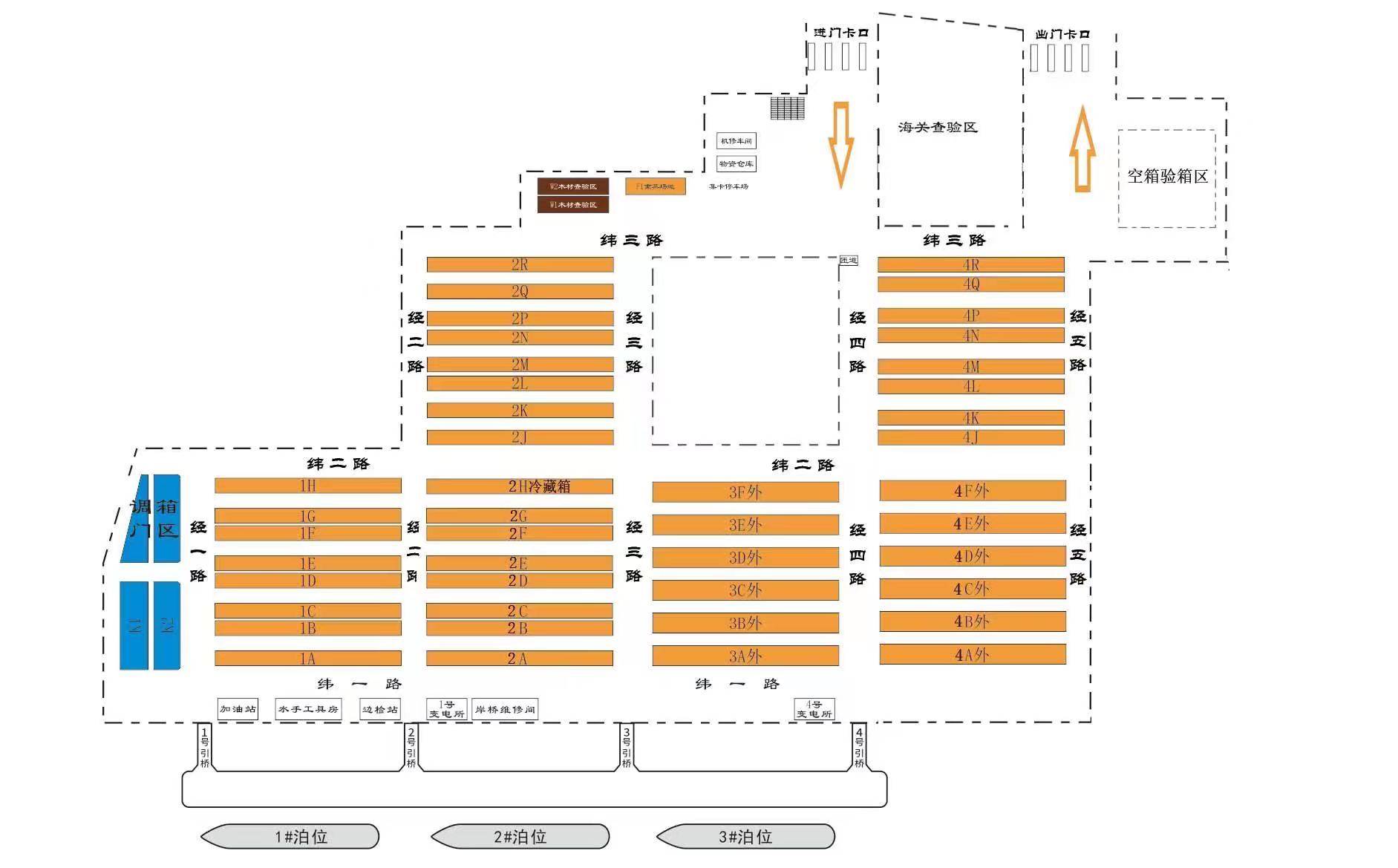 为进一步优化港区通行,提高服务水平,甬舟码头计划启用新出门卡口,实现进出门分离,新出门卡口预计于12月16日10时起试运行,届时原出门通道停止使用。新出门卡口位于经五路与纬三路交界区域,详细位置见附图。