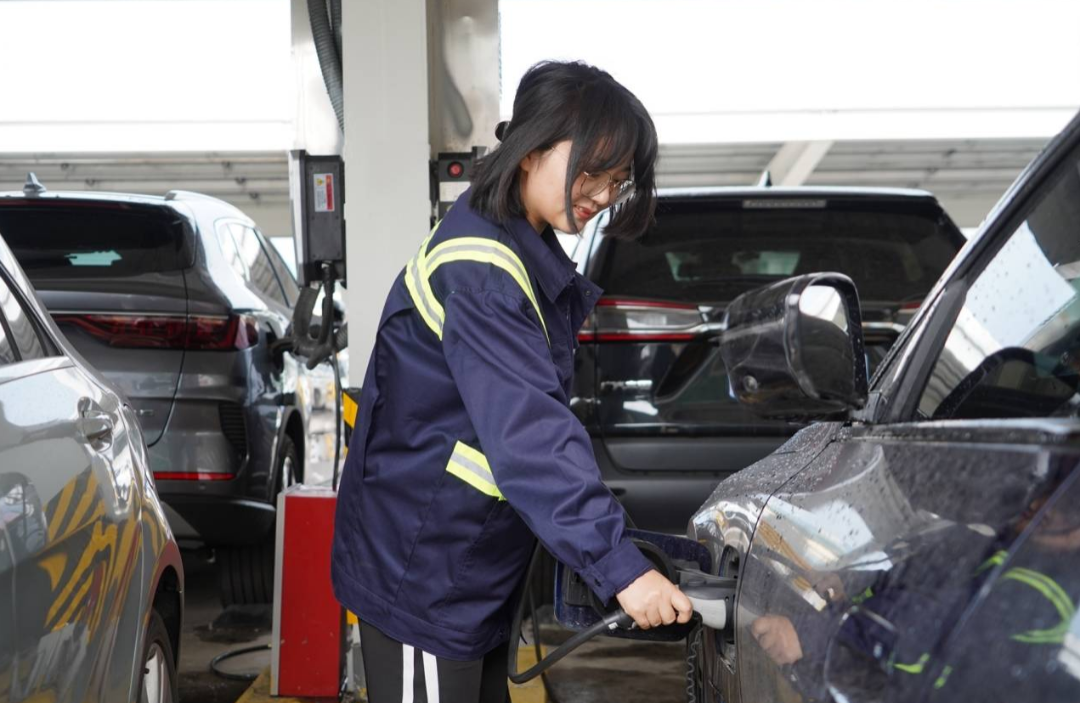 为了用足、用好光伏车棚所产生的绿色电能,公司在棚内设置了10个直流充电桩,按每辆车平均充电时长5至6小时估算,每天能满足近30辆新能源车的充电需求。每个充电桩上还配置了数字液晶显示屏和二维码,便于大家通过手机扫码完成支付,合理使用绿色能源。目前,光伏车棚项目已完成全部基础建设、电力设施安装等工作,并通过电力公司的并网运行验收。