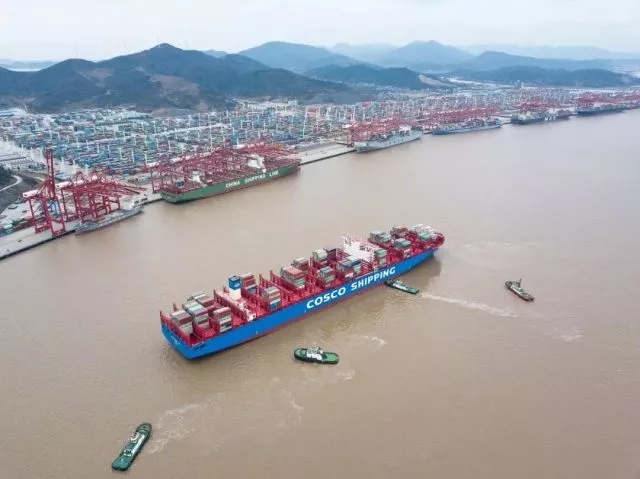 宁波舟山港不仅是国产最大集装箱船首航挂靠标配,也是国外各大班轮公司旗下最大集装箱船频频光顾的港口。此次“中远海运宇宙”轮所挂靠的宁波舟山港穿山港区集装箱码头是全球仅有的三个“千万级”单体集装箱码头之一,今年以来该港区已成功接靠超2万标准箱级集装箱船30艘次。