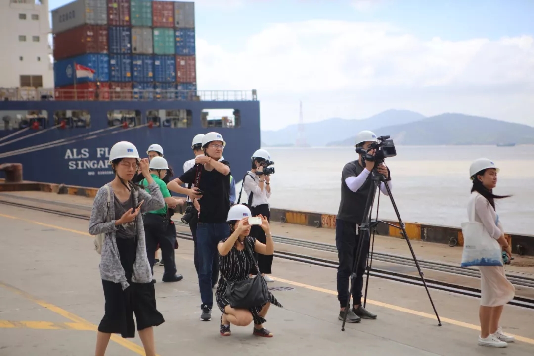 7月12日下午,来自中国时报时际创意传媒、指传媒、中时电子报、中评社、人民日报海外网等媒体的30余位海峡两岸媒体人来到宁波舟山港穿山港区进行参访,旨在深化浙台新闻及交流合作,宣传改革开放四十周年大陆经济社会发展取得的伟大成就。
