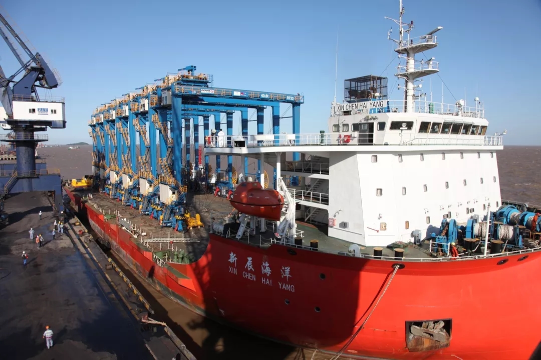 嘉兴港务6台新龙门吊顺利到港