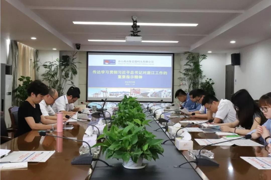 7月25日,公司召开党委理论学习中心组学习会,重点学习贯彻省委十四届三次全会精神,围绕习近平总书记对浙江工作作出的重要指示,就加快建设国际一流强港开展研讨,推进“八八战略”再深化、改革开放再出发。各基层单位也结合实际,开展形式多样的学习宣贯活动,掀起了学习贯彻习近平总书记对浙江工作重要指示精神的热潮。