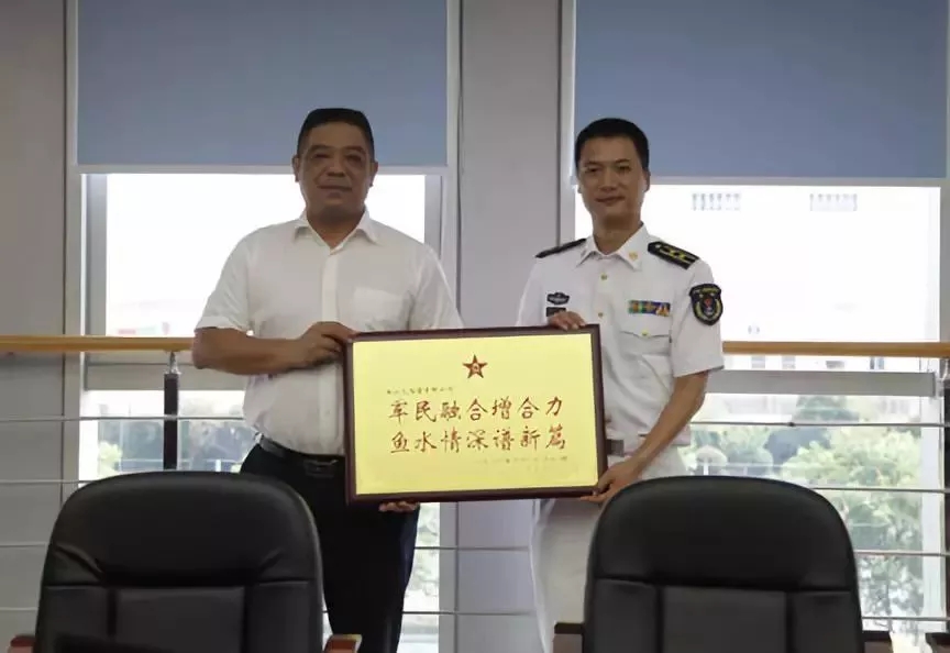 7月27日,进驻义乌机场某部队给义乌港公司送来一块题有“军民融合增合力,鱼水情深谱新篇”的牌匾,希望今后双方能有更多良好的互动。