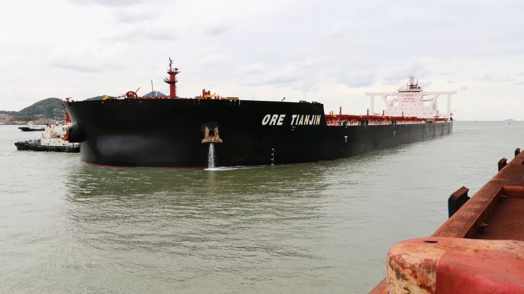 10月20日,满载着39万吨铁矿石的矿船“矿石天津”轮顺利靠上宁波舟山港衢山港区鼠浪湖矿石中转码头1号泊位。这是该码头自2016年9月首次试靠“远见海”轮以来,累计试靠的第50艘次40万吨矿船。
