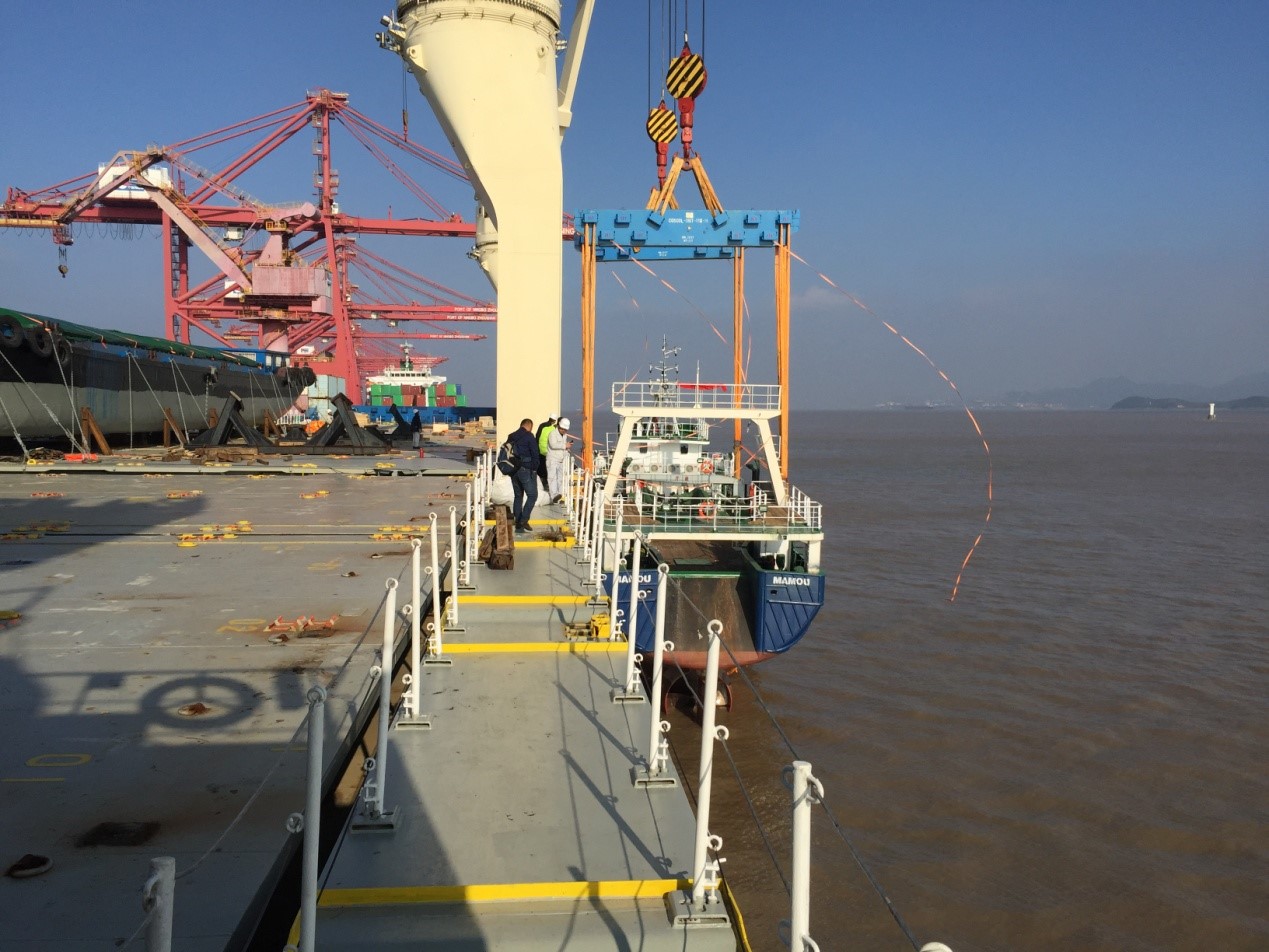 11月20日,当最后一艘拖网渔船被缓缓放置固定在杂货船“大庆”轮的甲板上,标志着今年首批渔船整船出口项目在宁波梅西滚装码头有限公司顺利完成!