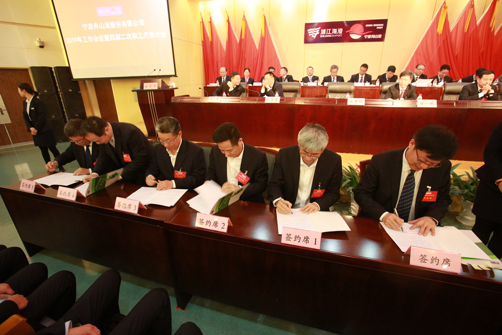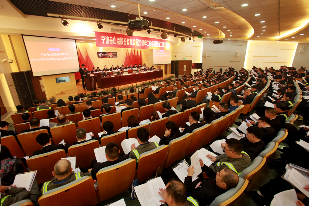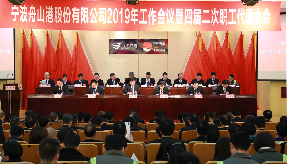 1月28日,宁波舟山港股份有限公司2019年工作会议暨四届二次职工代表大会在宁波港大厦会议中心召开,集团董事、党委委员,股份公司党委书记、总经理、董事宫黎明作了题为《推进“四化”管理 提升执行能力 全力推动港口一体化高质量运营》的工作报告。报告回顾总结了股份公司2018年主要工作,提出了2019年发展新要求,对2019年主要工作进行了全面部署。