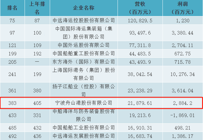 7月10日晚,财富中文网发布2019《财富》中国500强排行榜,11家中国上市港航船舶企业入围500强榜单,公司以218.7961亿元的营业收入,列“500强”第383位,较上一年度提升了22位,其中在上市港航船舶企业中排名第8位。