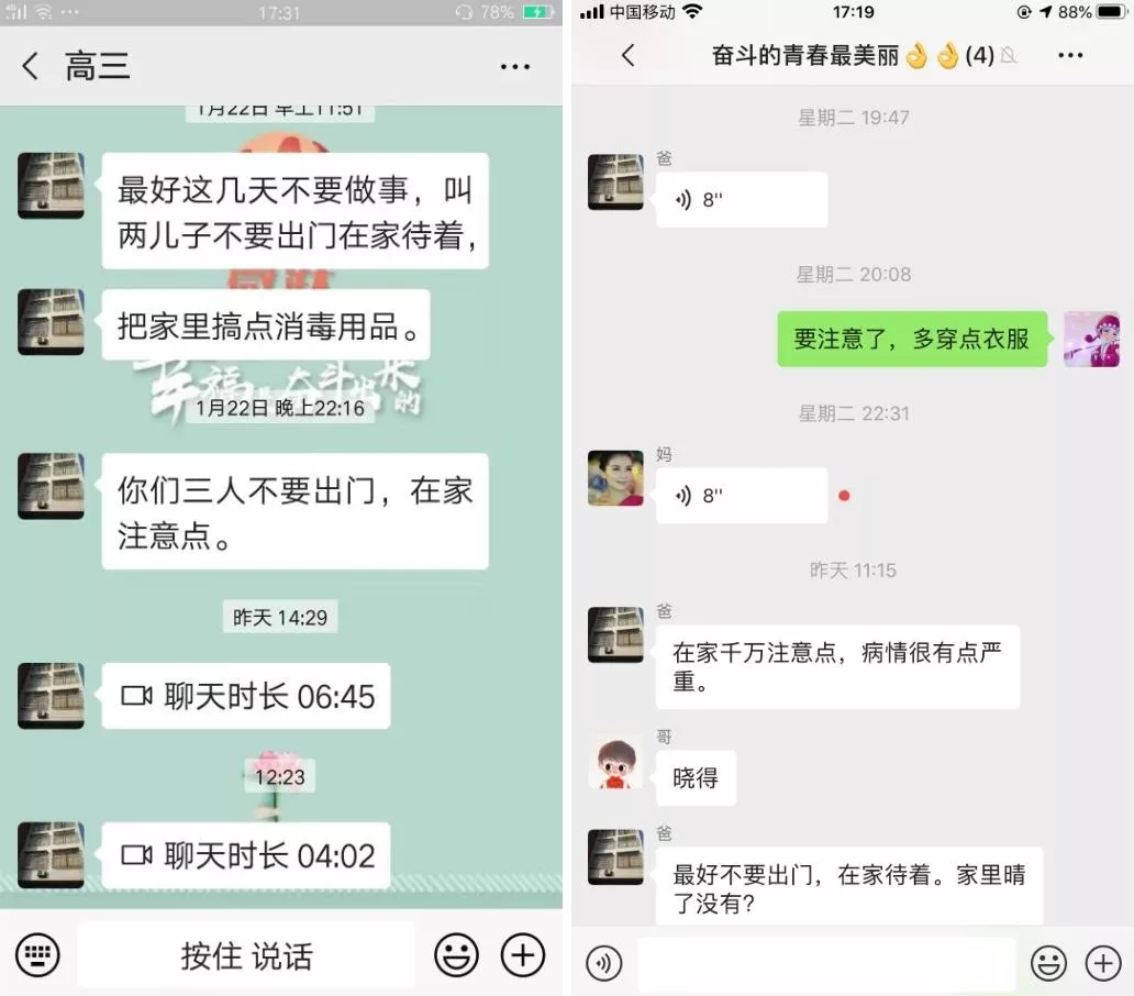 高超的家位于离武汉200多公里外的孝感市,在最新公布的湖北省新型冠状病毒确诊病例总人数中仅次于武汉市和黄冈市,属于疫情较严重地区。虽然人在武汉,但父亲的心中始终牵挂着家人,时不时询问家中情况。高超告诉父亲,家里一切安好,防疫和生活物资充足,让他不用担心,专心投入火神山医院建设。