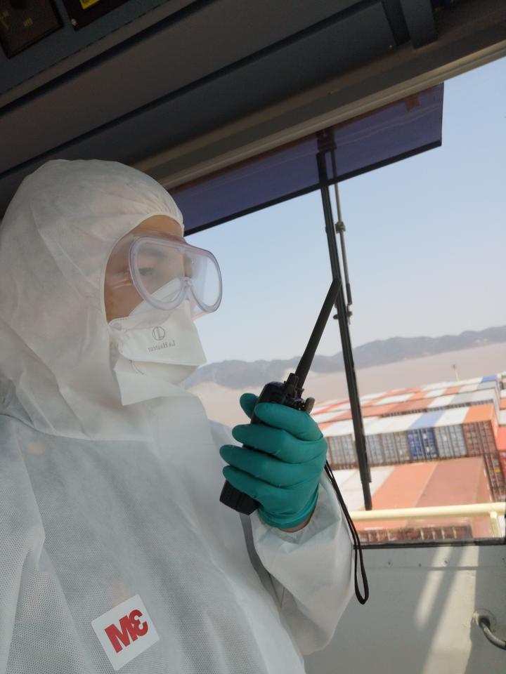 “关键时刻,咱们就得上!”接到任务后,大港引航立即组织精干力量赶赴一线。20日8时30分,杜伟杰身穿防护服、头戴护目镜和口罩,“全副武装”登上了“古娜马士基”轮。