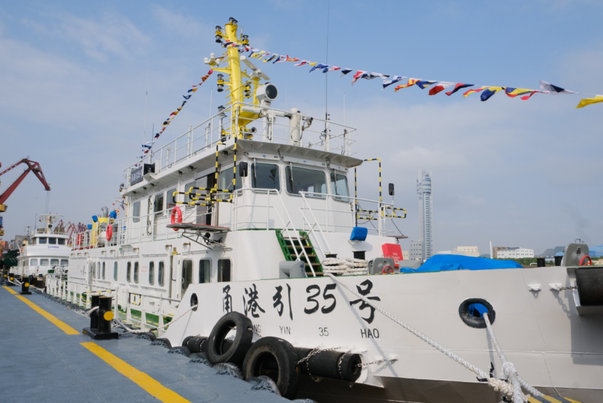 5月8日,全国引航系统首艘满足船舶发动机C1/C2排放标准(船舶发动机排气污染物中国第一、第二阶段排放要求)的引航艇——“甬港引35号”轮交接仪式在宁波舟山港举行,标志着浙江省海港集团、宁波舟山港集团在打造“资源节约、环境友好”的绿色港口、推进引航服务“绿色化”“智能化”的道路上更进了一步。