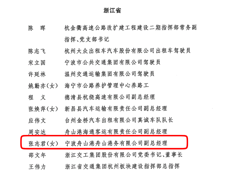 宁波舟山港股份有限公司职工获评“全国交通运输系统劳动模范”