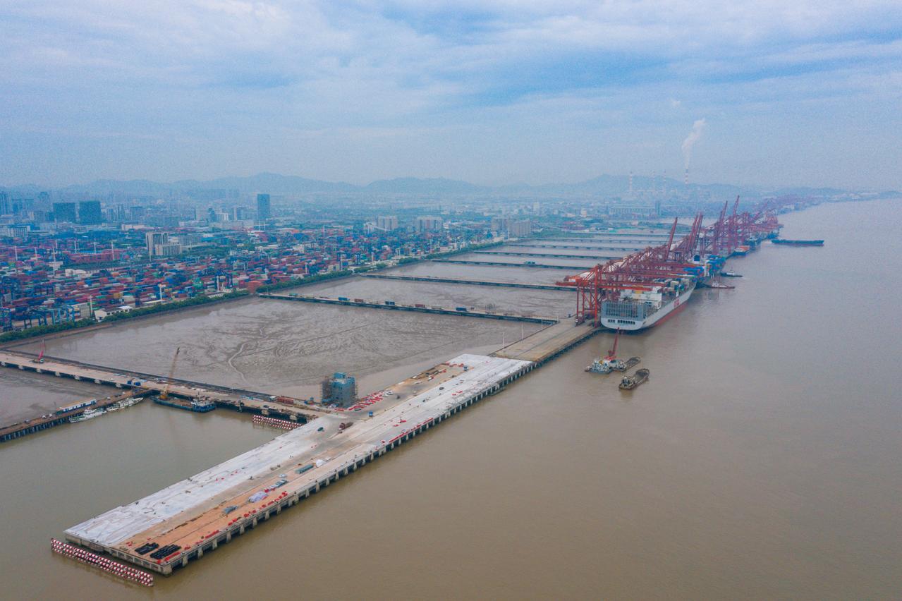 7月28日上午,随着最后一块码头面浇筑完成,宁波舟山港北仑港区通用泊位改造工程主体结构正式完工,较合同工期提前3个月完成,助力北仑港区集装箱海铁联运中心建设迈上新台阶。