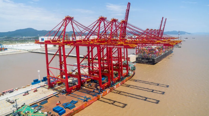 宁波舟山港梅山港区迎来4台国内最高远控自动化桥吊