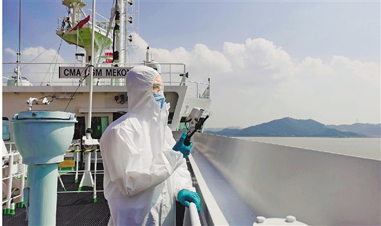 今年突如其来的新冠肺炎疫情,给港口防疫和生产作业带来严峻挑战。引航是船舶从境外进入国内的第一道大门,必须严防死守。为此,宁波舟山港规定,引领船舶作业时,引航员除了戴上口罩、手套等防护用品外,还应采取穿防护服、戴护目镜等防护措施。