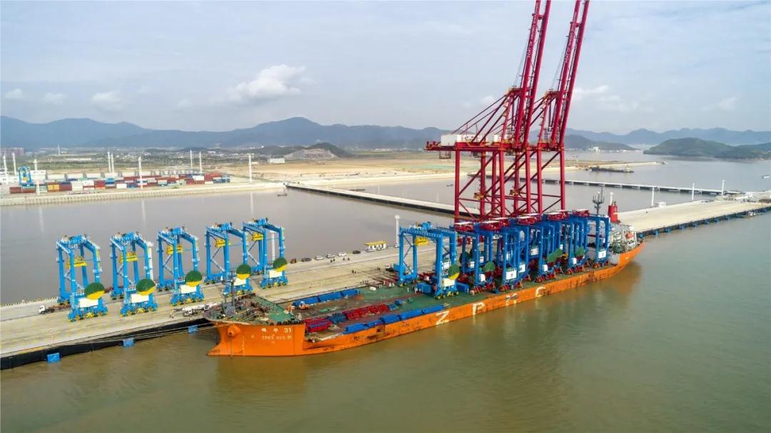 11月1日、2日,宁波舟山港最高等级集装箱码头——梅山港区集装箱码头能力提升迎来新进展,6台“无司机室”远控自动化龙门吊到港完成卸船,新建的8号集装箱码头泊位完成交工验收。待新自动化龙门吊和新泊位投用后,梅山港区集装箱码头综合作业能力将进一步提升。