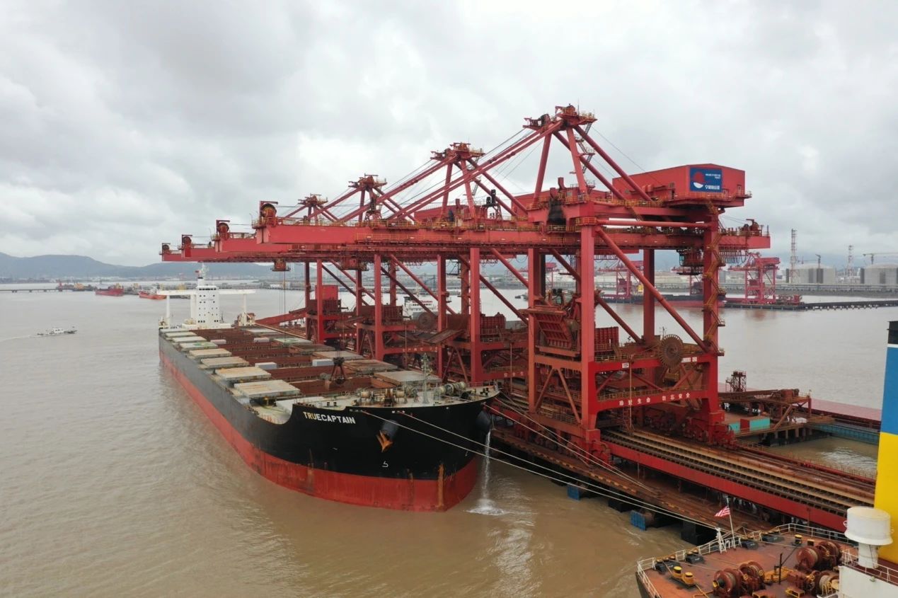 11月18日19时,随着靠泊在宁波舟山港股份有限公司北仑矿石码头分公司(以下简称“矿石公司”)北仑操作分部2号泊位的“坎普顿”轮上17.8万吨铁矿石被接卸完毕,矿石公司今年货物吞吐量已累计完成10004.7万吨,较去年提前11天突破“亿吨大关”。这是该公司自2017年以来连续第四年吞吐量“破亿”,也是历年来最早突破“亿吨大关”的一年。