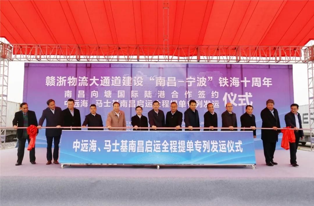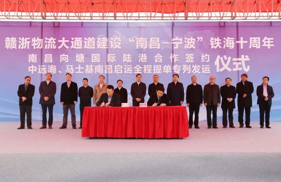 12月1日,浙赣物流大通道建设“南昌-宁波”铁海十周年活动在江西南昌举行,期间宁波舟山港股份有限公司与南昌县签署《南昌向塘国际陆港框架合作协议书》,中远海、马士基“南昌-宁波舟山港”全程提单专列成功首发。