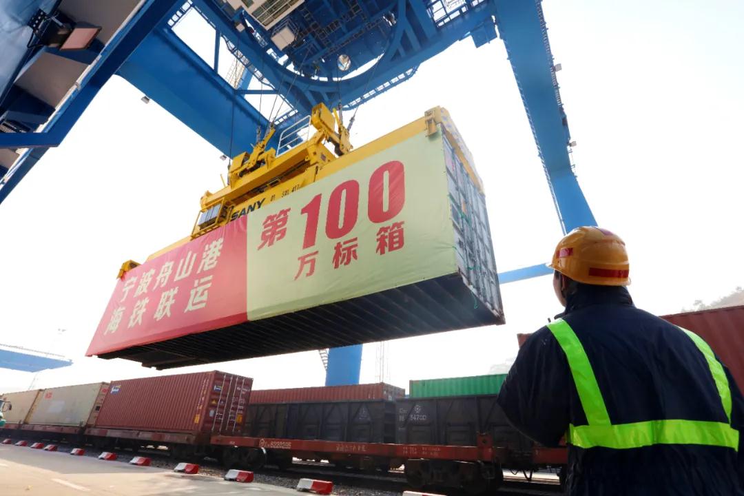 迈上“百万箱”新台阶是宁波舟山港发展海铁联运的新起点。今年11月,交通运输部批准将宁波双层集装箱海铁联运创新列入交通强国试点工作,甬金铁路也已按双层高箱的更高标准进行设计和建设,进一步提振了未来宁波舟山港发展海铁联运的信心。下一步,宁波舟山港将持续强化提升海铁联运服务水平与效率的力度,以海陆双向齐驱之势,全面融入服务“以国内大循环为主体、国内国际双循环相互促进”的新发展格局,为浙江争创社会主义现代化先行省作出新贡献。
