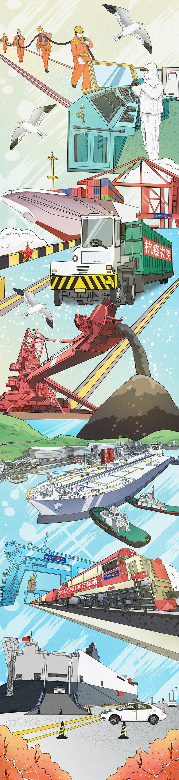 深“V”反转的背后,是宁波舟山港扛起建设“一流强港”使命的决心与魄力。面对疫情影响,宁波舟山港成立防境外疫情输入引航专班,专门服务境外疫情风险地区重点船舶,至今已成功引领来自境外疫情风险地区船舶12533艘次;千方百计保“两链”,主动为航运物流等企业解决困难,通过数字化手段帮助集卡司机分批次到岗,逐步助推港口生产水平恢复;积极响应政府号召,降低企业负担,优化营商环境,通过采取一系列优惠措施为相关企业累计降费超2亿元……