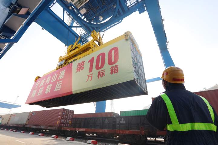 为尽快适应以国内大循环为主体、国内国际双循环相互促进的新发展格局,宁波舟山港充分利用“一带一路”、长江经济带枢纽节点等区位优势,织密服务网络。当前,集装箱航线总数已创下260条的新历史纪录,其中与“一带一路”相关航线总数超100条,全年航班升至近5000班,完成年箱量超1000万标准箱。持续推进内支内贸业务,乍浦线、温州线、大麦屿线等多条内支线箱量稳中有升,助推宁波舟山港全年完成内贸箱量同比增长超10%。与此同时,依托多个港区直通铁路的优势,新开拓了安庆、海安等16个海铁联运业务点,使海铁联运班列总数达到19条,业务辐射全国15个省市(自治区)、56个地级市,全年集装箱海铁联运业务量首次突破100万标准箱,同比增长24.2%。