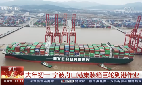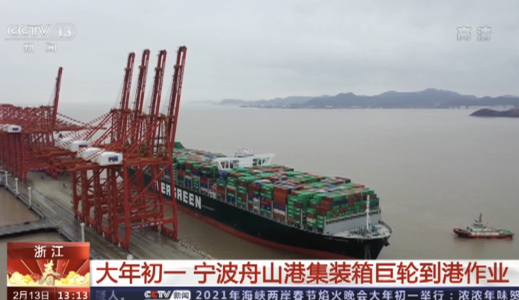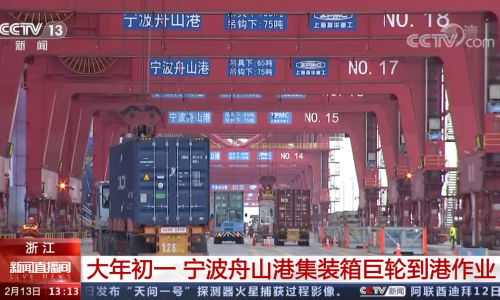 【央视新闻】大年初一 宁波舟山港集装箱巨轮到港作业