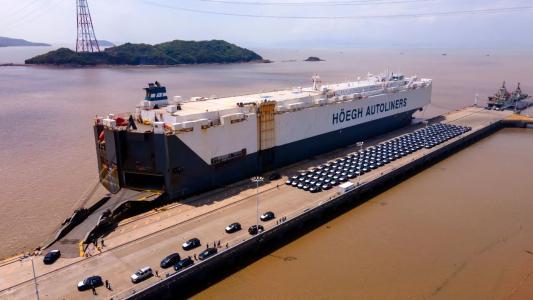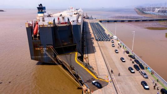 浙江省今年首批外贸滚装汽车在宁波舟山港装船出口