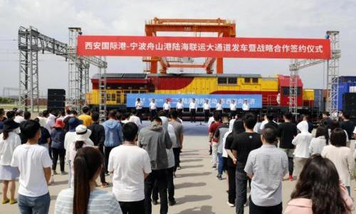 “我宣布,西安国际港—宁波舟山港陆海联运大通道班列发车!”6月2日下午,一声响亮的发车令之后,满载本地出口货物和中欧班列长安号回程货物的西安国际港—宁波舟山港陆海联运大通道班列,正式从西安国际港发车驶往宁波舟山港。该班列的开行是西安、宁波携手深度融入共建“一带一路”大格局,推进中欧班列(西安)集结中心建设,打造“海铁联运+中欧班列”新发展格局的重要举措,为两市充分发挥港口优势,实现更大范围、更宽领域、更深层次对外开放交流合作搭建了新通道、新平台。