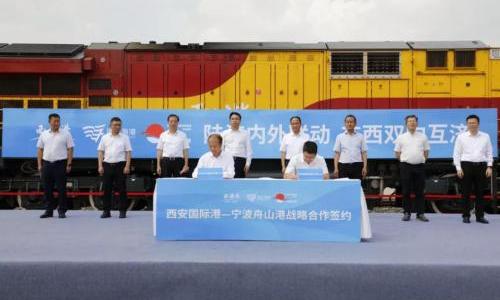 西安国际港—宁波舟山港陆海联运大通道的建设,使得21世纪海上丝绸之路和丝绸之路经济带紧密连接,构建起承东启西、贯通欧亚、快捷高效的海铁联运大通道。下一步,双方将本着“优势互补、互惠互利、合作共赢、共同发展”的原则,充分发挥在港口综合物流方面的品牌、客户资源及中欧班列路网、运能等优势资源,共同建立全面战略合作伙伴关系,创建区域间新型合作模式,实现高效互联互通,打造内陆改革开放高地,推动中欧班列降本提质增效,加快推进中欧班列(西安)集结中心建设,联动助力构建以国内大循环为主体、国内国际双循环相互促进的新发展格局。