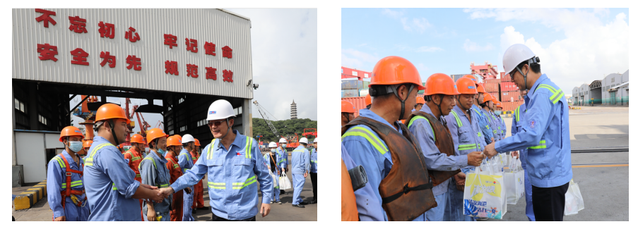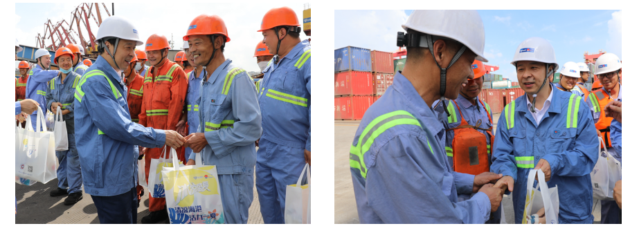 在镇司煤炭泊位、杂货泊位、流机修理班,以及港强公司消防中队,宫黎明一行向冒酷暑、战高温,奋战在港口一线的员工表示亲切慰问,并送上饮品、毛巾等防暑物资。宫黎明叮嘱大家,在保障安全生产的同时,更要加强自我安全保护意识,劳逸结合做好防暑降温工作。他强调,消防中队既要履行防火职能,也要发挥救灾作用,在台风天气做好应急工作。