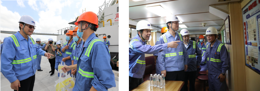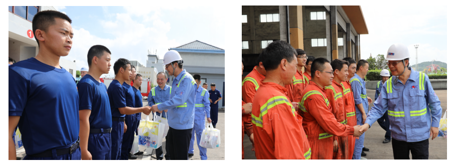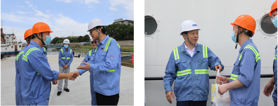 7月20日上午,公司党委书记、董事、总经理宫黎明带队赴镇司、甬港拖轮、港强公司,深入作业现场、消防中队、维修车间以及拖轮码头,看望慰问坚守在高温一线的员工,公司党委副书记、董事、纪委书记、工会主席金星,相关职能部门负责人等陪同慰问。