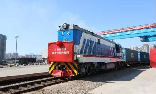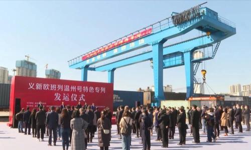 11月9日上午,由浙江省海港集团、宁波舟山港集团旗下浙江海港国际联运有限公司负责运营,满载着温州鞋类、卫浴、汽配等特色产品的义新欧班列温州号特色专列在温州西站鸣笛启程,将与先期通过铁路在金华南站集结的温州特色产品合并出运,经满洲里口岸出境,预计约18天后抵达俄罗斯。