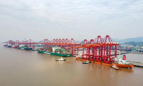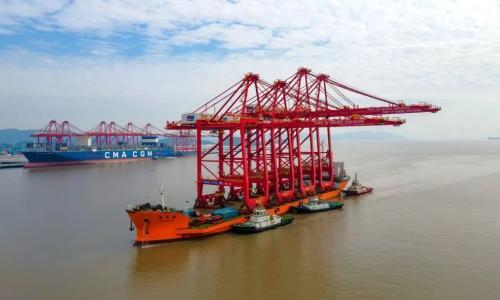 4月17日8时45分,4台远控自动化桥吊搭乘着“振华16”轮缓缓靠泊宁波舟山港梅山港区5号集装箱泊位。至此,梅山港区远控桥吊总数已达22台,占港区桥吊比重超5成,为探索更高水平自动化奠定了设备基础。