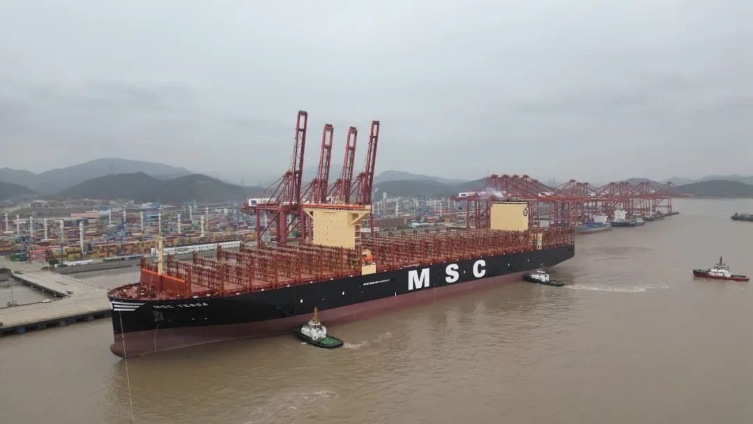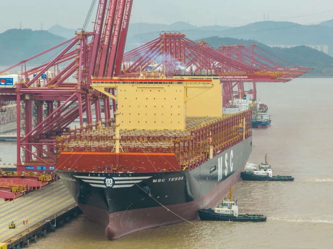 最大港*\/*最大船!“地中海泰萨”轮在宁波舟山港开启全球首航