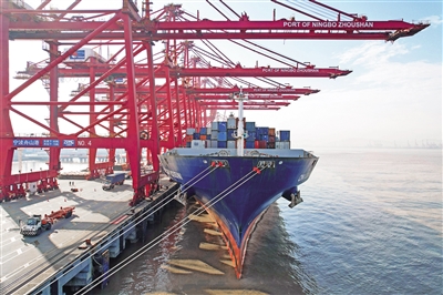 图为宁波舟山港金塘港区作业场景。(任洁/摄)