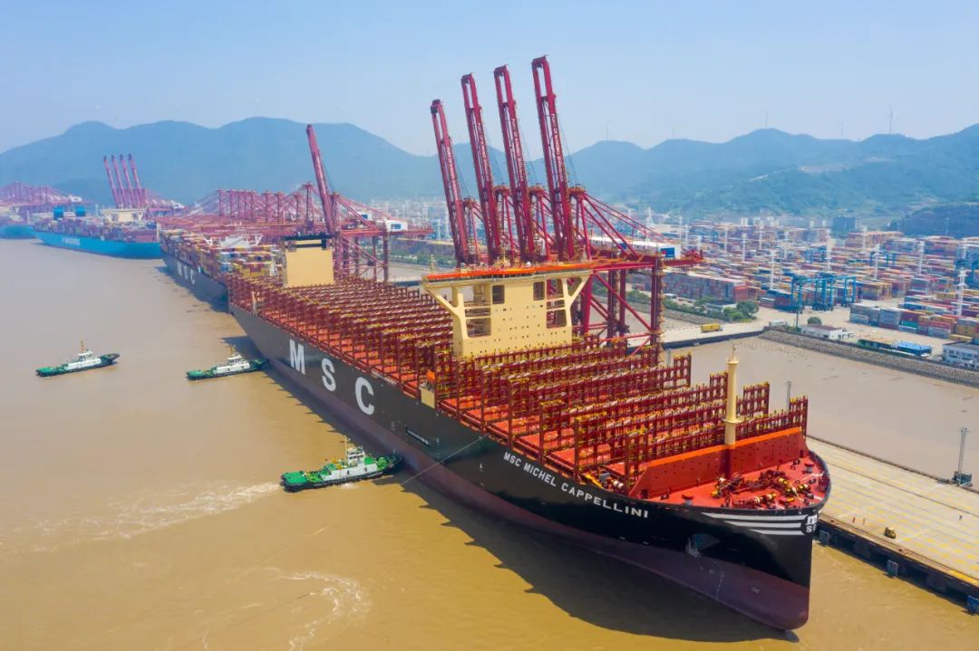 超大型船舶的靠泊对于港口的水深条件、设备设施、配套协同保障机制等均有着极高的要求,此次接靠“地中海米歇尔卡佩里尼”轮的全球第二大单体集装箱码头——宁波舟山港穿山港区集装箱码头,是目前我国前沿水深最深、泊位等级最大、装卸设施最先进的集装箱码头之一,可同时靠泊6艘全球最大型集装箱船舶;主营航线总数70余条,已连续6年集装箱吞吐量突破1000万标准箱。