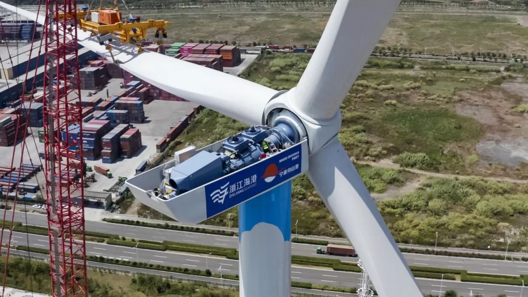 8月25日,随着梅山港区5号风机安装完毕,浙江省首个低碳码头示范工程——宁波舟山港梅山风光储一体化项目顺利投运,意味着浙江省首个“绿电码头”已建成。