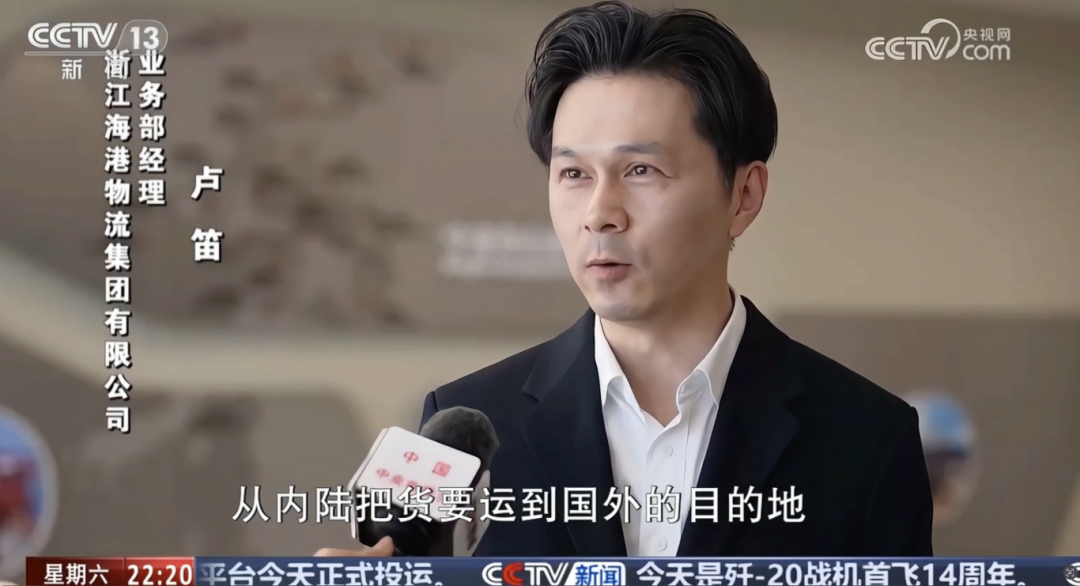 浙江海港物流集团有限公司业务部经理卢笛:“国内的出口企业,它从内陆把货要运到国外的目的地,要有多种方式。第一段就是从国内工厂运到国内的港口,通过铁路、公路或者水路。第二段就是从国内的港口运到国外的港口,通过海运的大船运出去。第三段就是需要从国外的港口运到目的地。”