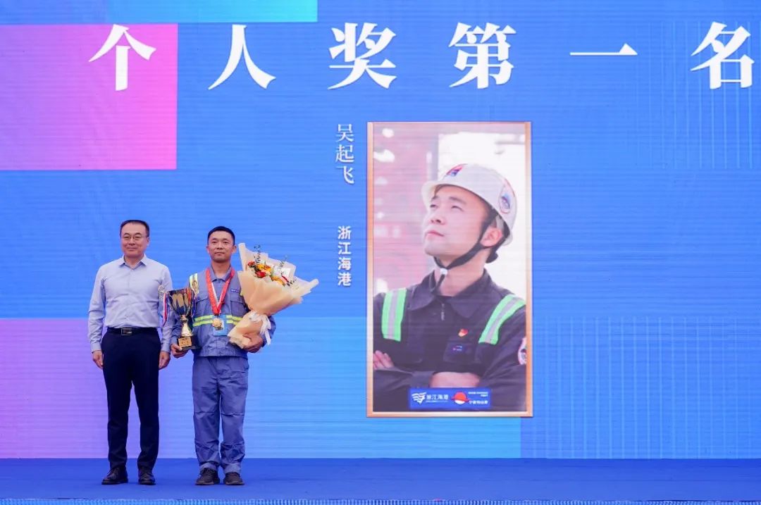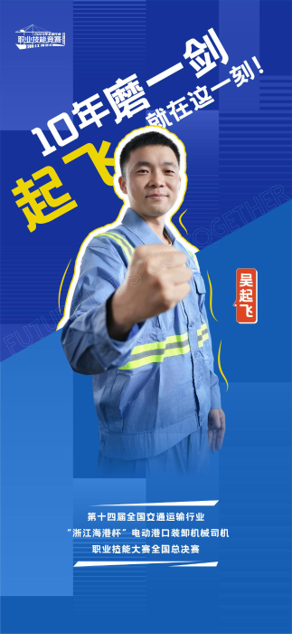 今年9月,吴起飞以第一名的成绩通过浙江省选拔赛,成为代表浙江省交通运输厅出战全国桥吊技术比武总决赛的选手之一。