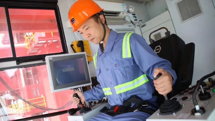 近日,在宁波舟山港梅山港区第十四届全国交通运输行业“浙江海港杯”电动港口装卸机械司机职业技能大赛全国总决赛的现场,码头工人吴起飞在42米高的桥吊操作室,熟练地操作着手柄,将集装箱稳稳地吊起、放下,一气呵成完成了限时闯关、稳关击球、精准打靶和模拟作业四个比赛项目,一举拿下全国总决赛冠军殊荣。