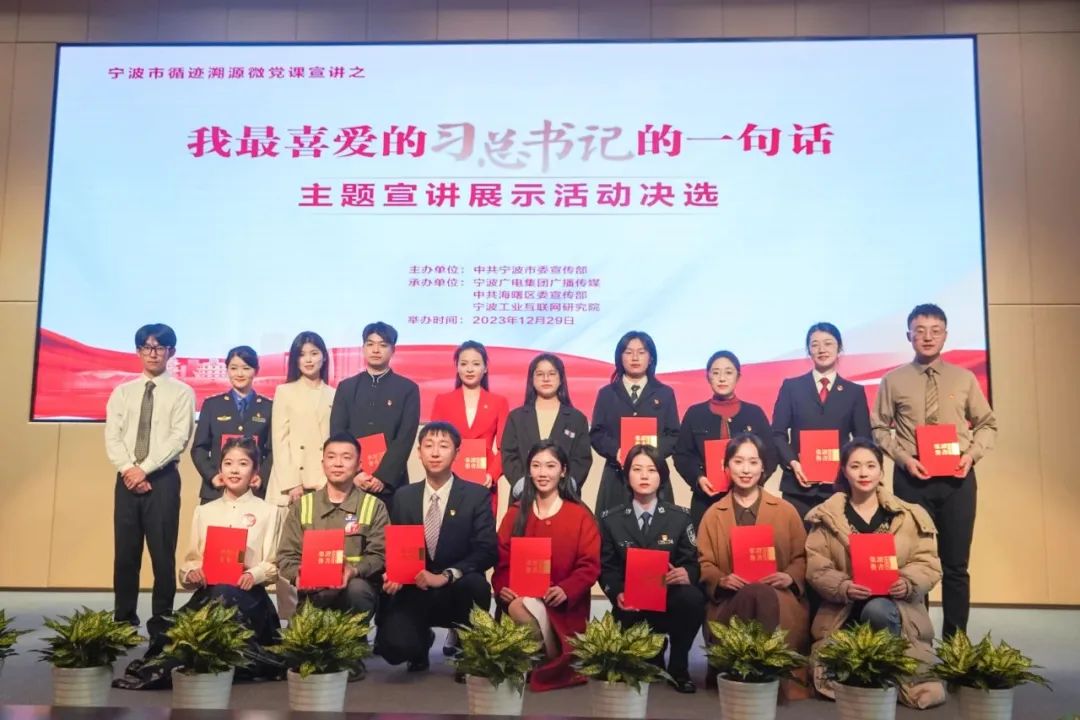 上周,由中共宁波市委宣传部主办,宁波广电集团广播传媒、海曙区委宣传部、宁波工业互联网研究院承办的2023年宁波市“我最喜爱的习总书记的一句话”主题宣讲暨循迹溯源微党课宣讲活动在宁波工业互联网研究院举行。公司营运操作部桥吊班职工吴起飞代表北仑区参赛,并以93.24的全场最高分获得特等奖!