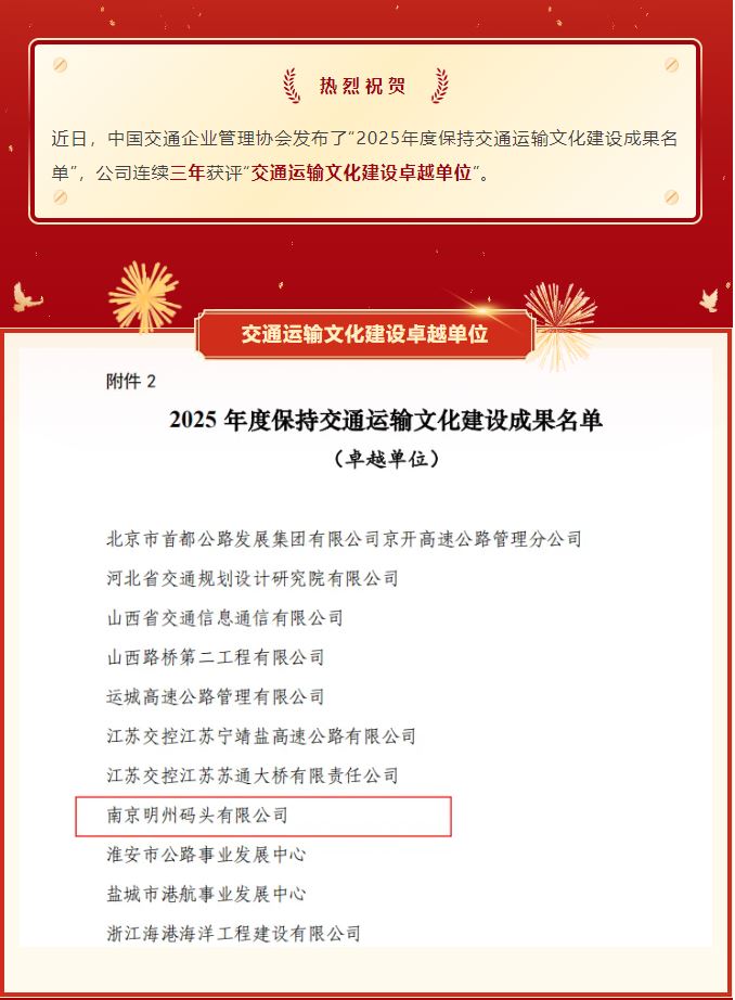 喜报!公司连续三年获评“交通运输文化建设卓越单位”