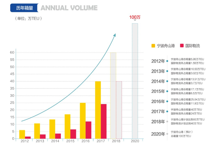 国际物流作为宁波舟山港主要的海铁联运经营单位,承担了约2/3的海铁联运箱量。
